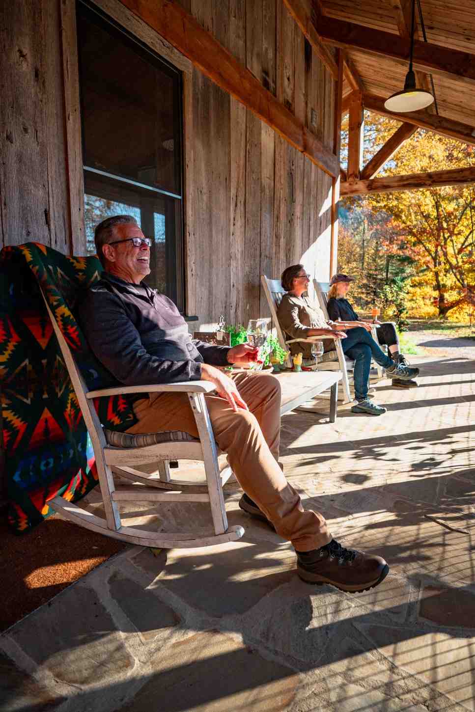 Outside chairs | 4 (Four chairs around firepit, plus 3 rocking chairs on porch) |