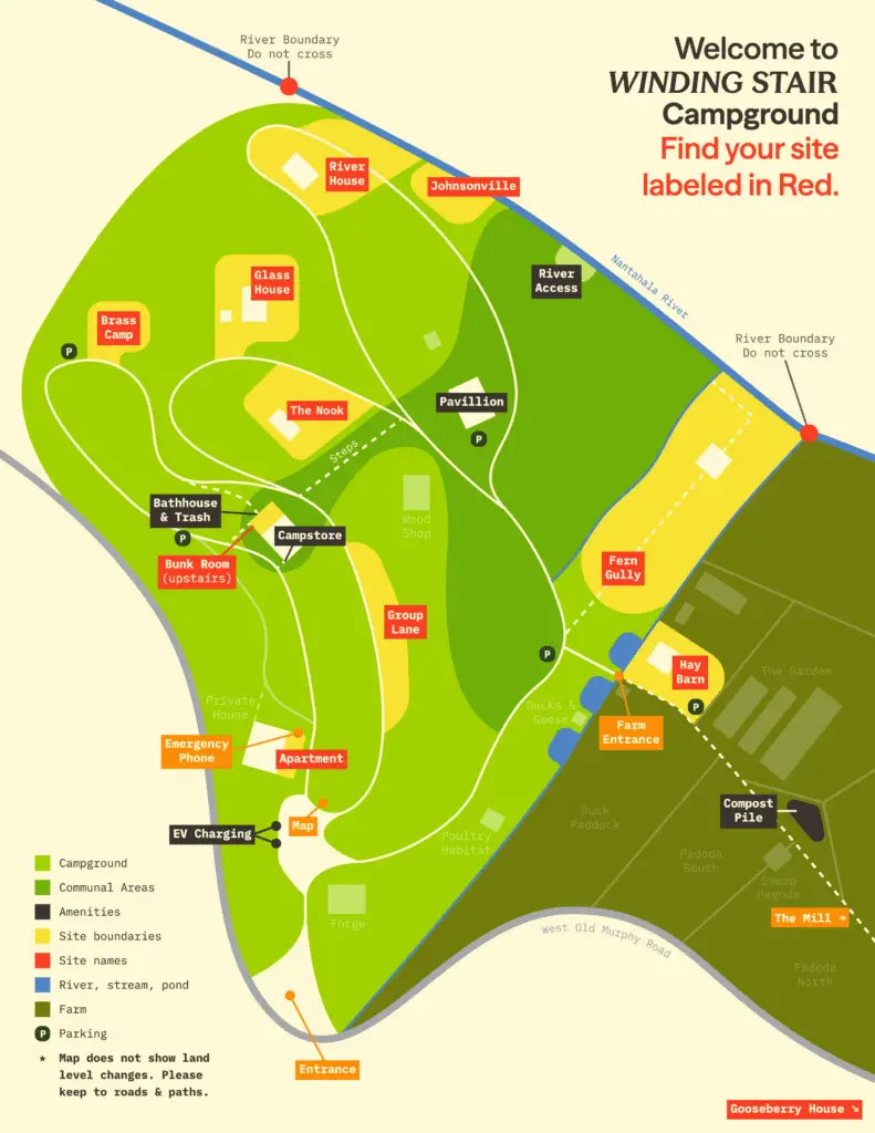 Winding Stair Campground is located behind a gate with coded access. A code will be sent to you prior to your stay.